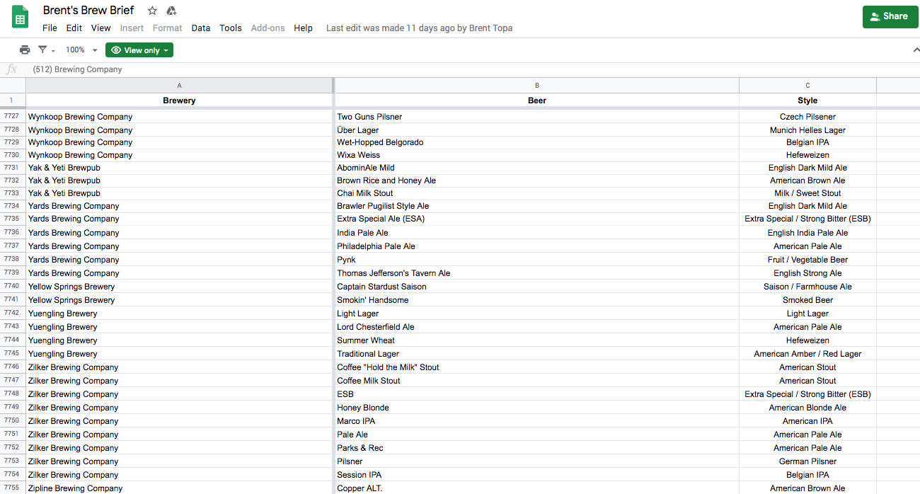 My preference, though, is an online spreadsheet. It allows me to design it however I want. Apps are great, but they can be slow when you have to search for your beer, venue, flavor characteristics, etc.