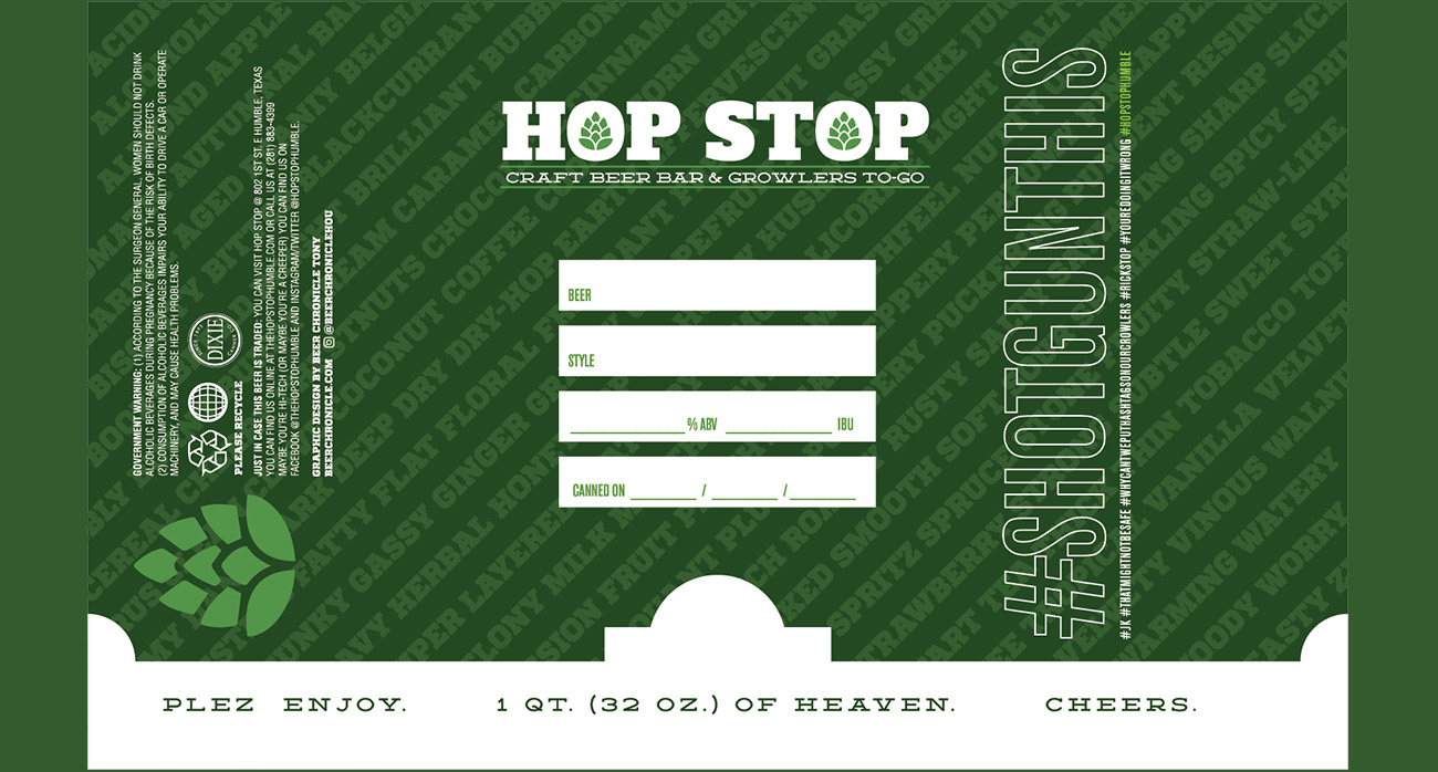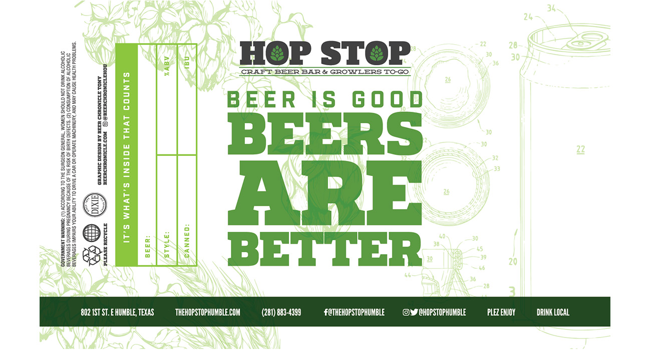 Hop Stop Humble was a staple in Houston. We were heartbroken to hear they were one of the many casualties of COVID19 as their business suffered unsustainable losses. Before they departed Houston for their next chapter, they held a design competition for patrons to put together their crowler labels. We submitted 3 options not knowing how stiff the competition would be, and we won first, second, and third place. They loved them all so much that they printed all three! What an honor.